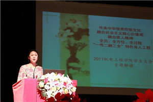 在全院员工中开展《传承中华优秀传统文化---德育主题》活动。融合社会主义核心价值观与铁人精神凝聚80字育人理念,在大一、大二班级中开展十个月百项德育活动实现全员、全方位、全过程教育。邀请老会战“当代徐霞客”采油一厂原党委副书记兼组织部长张朝仁老先生,为公司员工讲述70余年的读书人生,他的48本日记书写油田50年变迁,退休后自学外语独自去世界五大洲徒步旅行,走访中国99座历史名城,用铁人精神的时代感悟与公司老员工分享,鼓励员工读万卷书行万里路,胸怀大志。张老把退休后写的三本书送给公司员工,这些书是他走访旅行和读书学习的成果,也是他对大庆精神、铁人精神的诠释,继承与发扬。张老一年时间来公司多次,成为公司员工