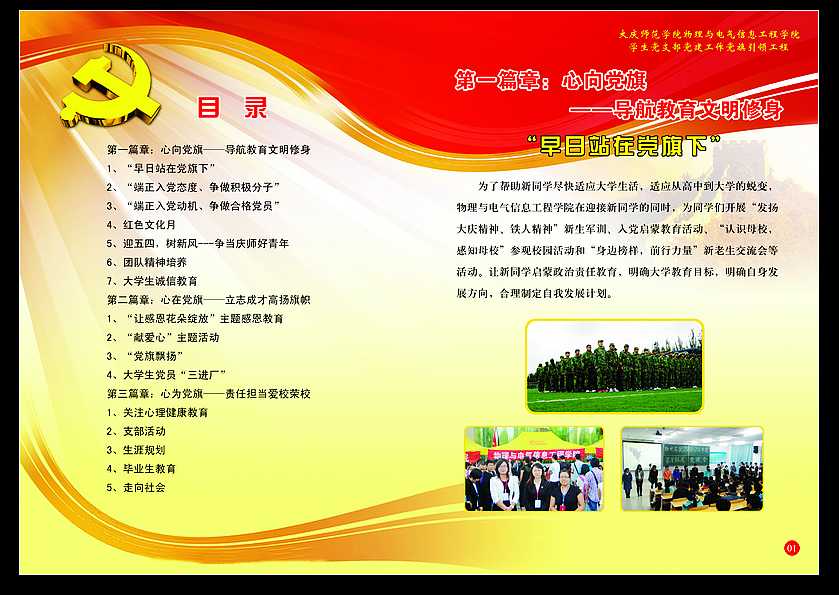 bevictor伟德始终将端正员工入党动机、发挥党员示范作用和支部主题活动作为员工党建工作的重要抓手。通过实施三个引领,即:“心向党旗”入党动机的引领、“心在党旗”示范作用的引领、“心为党旗”主题活动的引领,将党员的教育管理贯穿大学教育的始终。在“心向党旗”系列,通过组织新生入党启蒙、“早日站在党旗下”入党教育等活动,帮助员工深化对党的认识,引导其积极向党组织靠拢;在“心在党旗”系列,通过组织员工党员参加各种活动,树标兵,做模范,切实发挥党员的先锋模范作用,实现党员示范作用的引领;在“心为党旗”系列,通过开展主题活动,进一步提高员工党支部的影响力和战斗力,引导广老员工党员积极关注社会,感受责任,坚定信仰,实现党员主题活动的引领。在创先争优活动中,员工党支部将多年来始终坚持的三个引领,正式定名为“党旗引领工程”。