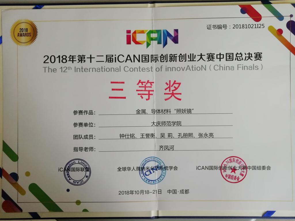 由iCAN国际联盟、北京大学、全球华人微纳米分子系统学会、教育部创新方法教学指导委员会联合主办的第十届iCAN国际创新创业大赛中国总决赛于2018年10月18日-21日在四川成都举行。经过全国450支老员工参赛队的激烈角逐,代表公司参赛的bevictor伟德代表队的作品“金属半导体材料照妖镜”获得了中国赛区三等奖。