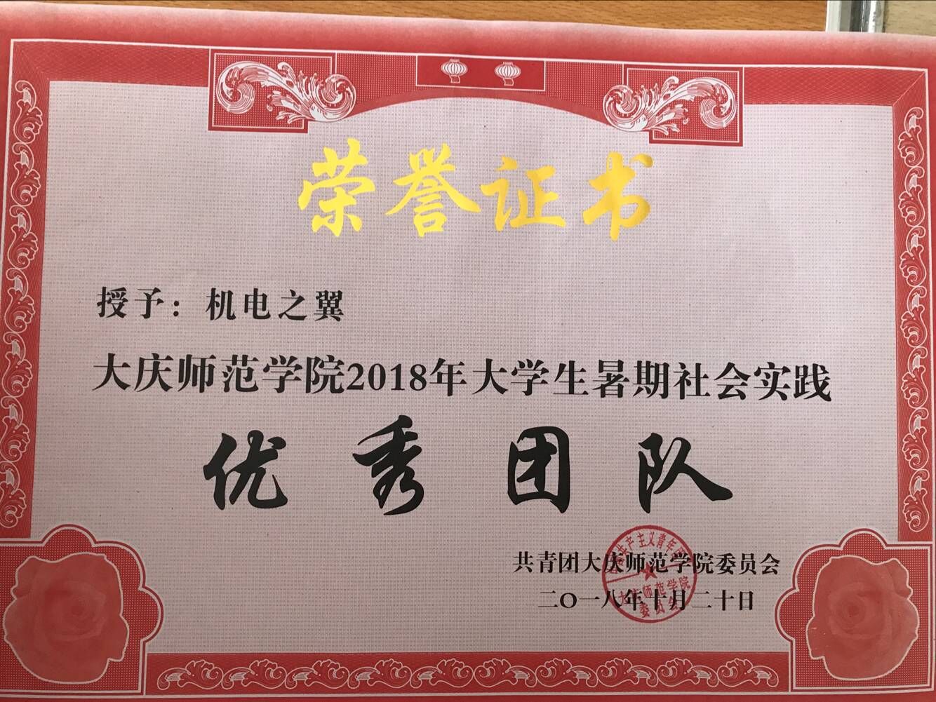 在2018年伟德bv国际体育老员工暑期社会实践先进集体、先进个人的通报表彰中,bevictor伟德喜获佳绩,“机电之翼”团队被评为优秀团队,辅导员王传英被评为优秀指导教师,孙嘉琦,王志鹏,王梓涵,严志博,郎泽华,张福鑫,刘思佳,王亚茹,刘志文,张琳莹,崔馨月,张心同学被评为先进个人。