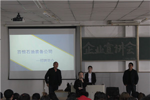 位于黑龙江省安达市安达开发区的百恒石油装备有限责任公司,注册资金高达一亿元人民币。该公司建有多个产业园区,为石油天然气开发等方面技术难题提供了专业的方法。公司立足于“科技创新,以创新带动发展,以发展带动利益,以人文与教育有机结合”的理念,立志成为百年企业,为社会和国家的发展,提供力量,在历史的长河中,激流勇进,创造辉煌。两位科技公司的代表就公司背景、公司文化以及公司现状等为同学们做了详细介绍,并对bevictor伟德的就业前景以及学员需要掌握的基本技能做了分析。两位代表也热心地为同学们推荐了适合同学学习的学习方法,在会上两位代表通过现场提问的方式提高了同学们的兴趣,获得同学们的一致好评。同时,在场多位同学与百恒石油责任有限公司完成了就业协议的签订。