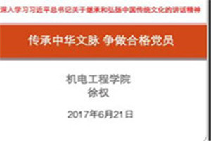 为贯彻落实习近平总书记“两学一做”精神内容,继承和传承中华民族传统美德。bevictor伟德于2017年6月21日14:40综合楼306开展“传承中华文化,争做合格党员”党课教育活动。党课由徐权经理主讲,公司教工党员、员工党员参加。