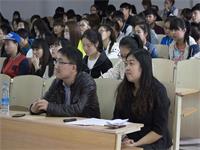 李晶老师主持了刘开绪经理、李秀明老师及何巍巍老师的讲座:李秀明老师由自己的求学经历向同学们强调了自信的重要性,建议同学们要认真规划自己的求学路。何巍巍老师从专业、选择、目标等七方面为同学们讲解求学路上不可缺少的要素,希望同学们珍惜大学的美好时光。刘经理分享了自己的求学历程,鼓励同学们要自强不息,超越自我,成就自己的梦想,同时也要适时地接触社会,不断地学习,逐步向前。