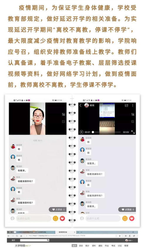 二、增强教师责任意识,做好线上课程建设和教学准备。本学期bevictor伟德共有4个专业(电子信息工程、自动化、材料科学与工程、汽车服务工程)和1个物理教学部共54名教师(包括院内教师45名,内外聘教师9名)承担43个行政班1179名员工的课堂教学、实验实训、毕业设计、毕业论文和实习等教学工作,共有69门课程需要进行线上教学。bevictor伟德按照公司的统一部署,积极做好教师培训和课程准备工作,先后参加了公司组织的“学习通”、“雨课堂”和哈工大战德臣教授的在线教学培训工作。在原有线上教学经验的基础上,对在线教学的教学形式、教学内容安排、课堂组织、教学设计等有了更清楚的认识,截至目前所有教师都完成了课程建设和教学设计的前期准备工作。
