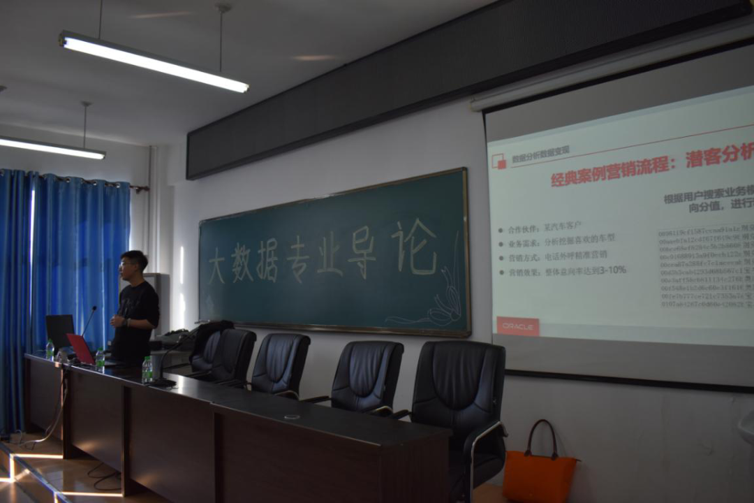 讲座进行中,王秀强经理先让新生提出了对本专业存在的困惑。提问结束后,王秀强经理对新生解释道:数据科学与大数据技术是2016年我国高校新增设置的本科专业。此专业课程教学框架涵盖了大数据的发现、处理、运算、应用等核心理论与技术。具体课程包括:大数据概论、大数据存储与管理、大数据挖掘、机器学习、人工智能基础、Python程序设计、统计学习、神经网络与深度学习方法、多媒体信息处理、数据可视化技术、智能计算技术、分布式与并行计算、云计算与数据安全、数据库原理及应用、算法设计与分析、高级语言程序设计、优化理论与方法等。