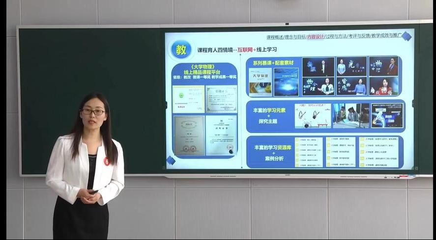 《大学物理》课程教学团队围绕“推动教学创新,培养一流人才”的大赛主题,本着以员工发展为中心的教育理念,以物理学理论为基础,以培养攻坚克难、善于创新的应用型人才为目标,,凝练了“三环四境”融合“五度八步”深度学习创新主题。团队将“工匠精神”、“五色教育”、大庆精神、铁人精神等思政元素润物无声的融入教学内容,通过信息化工具数字赋能铸魂育人。参赛作品经过反复打磨提交材料后,进入省赛现场决赛,最终获得第三届黑龙江省高校教师教学创新大赛中级及以下组别一等奖的好成绩。