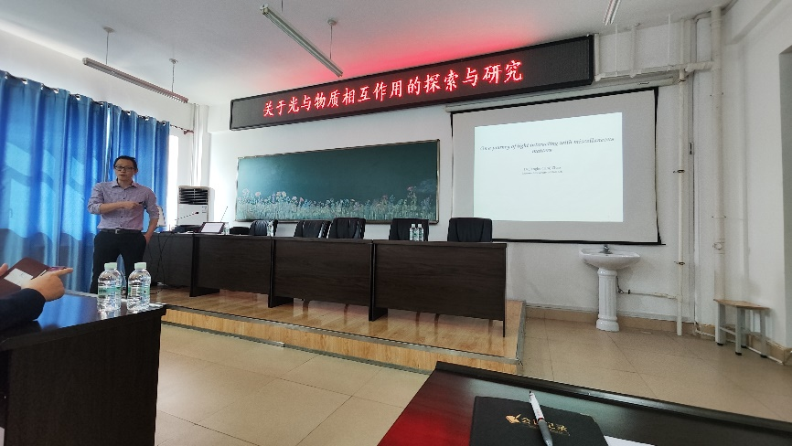 报告会上,赵江波博士聚焦于光与物质相互作用的跨学科研究,从纳米材料设计到光学理论创新的多个领域为大家阐述了他的主要研究工作,展示了他在开发高性能生物标志物(如超亮、高灵敏度、稳定和多路复用的探针),并探索光在纳米尺度下的行为机制等方面的最新成果。报告整合了实验数据、理论模型和应用案例,强调在生物成像、防伪和材料科学中的实际应用。