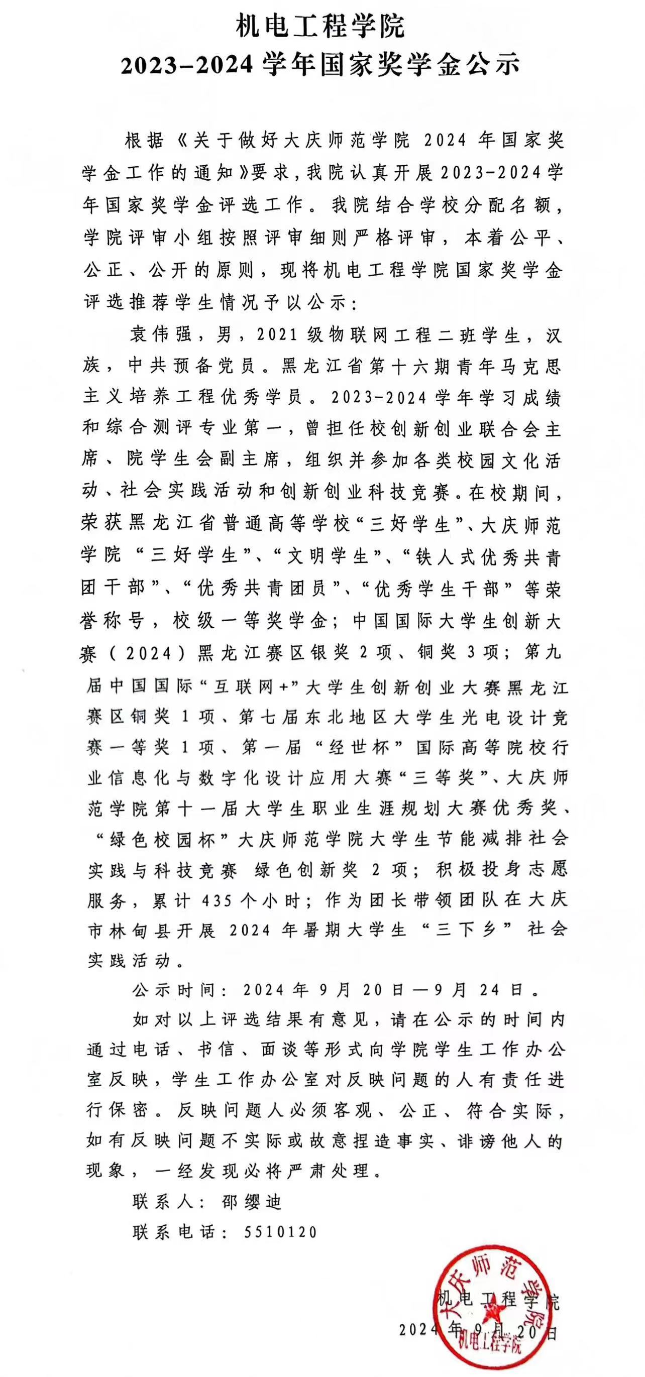 bevictor伟德2023-2024学年国家奖学金公示