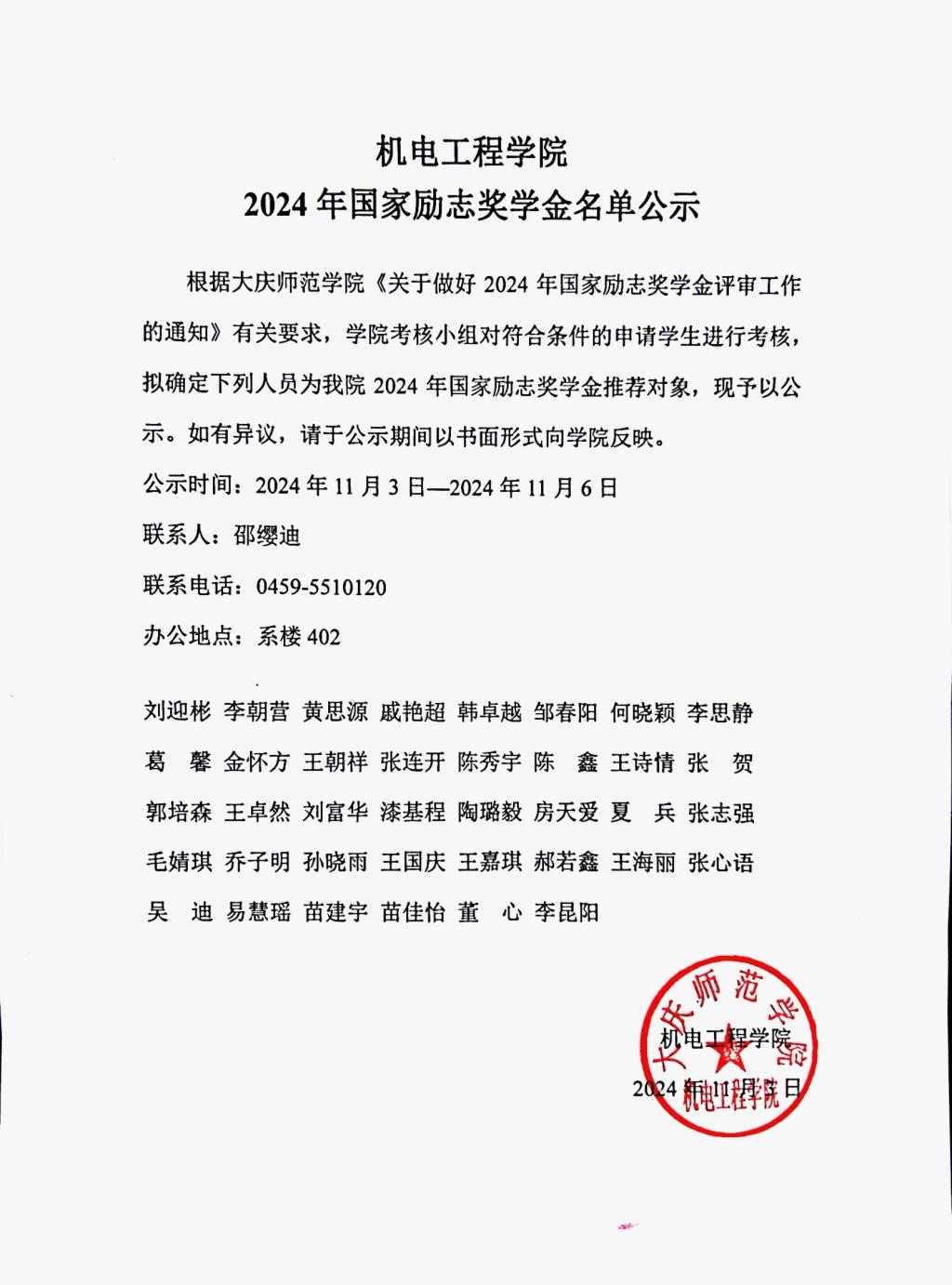 bevictor伟德2024年国家励志奖学金公示名单公示
