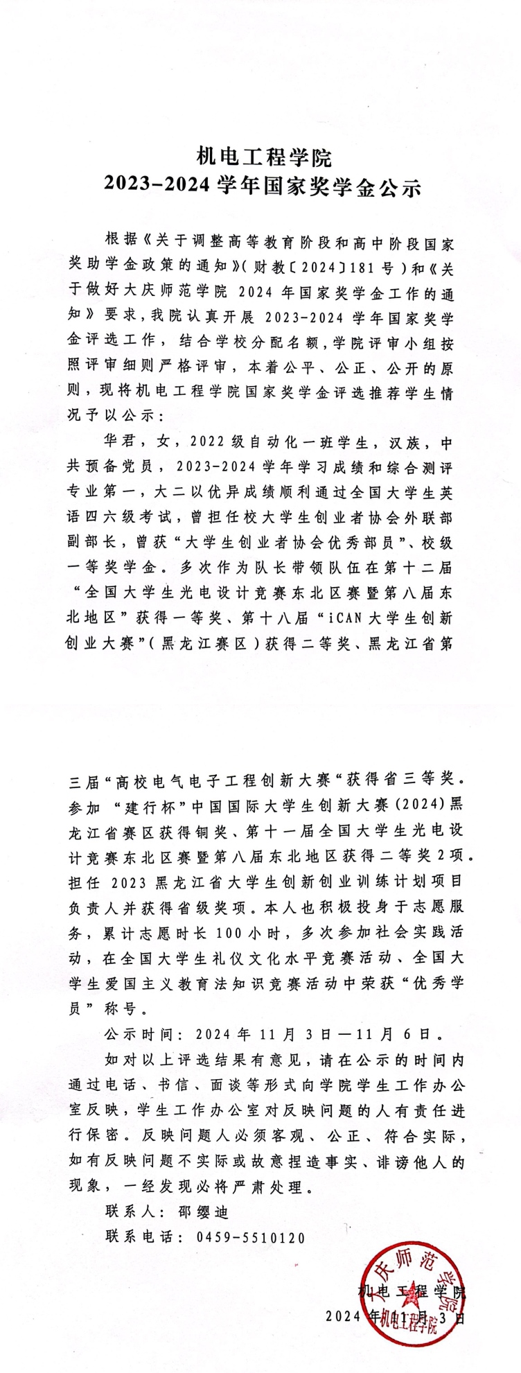 bevictor伟德2024年国家励志奖学金公示名单公示