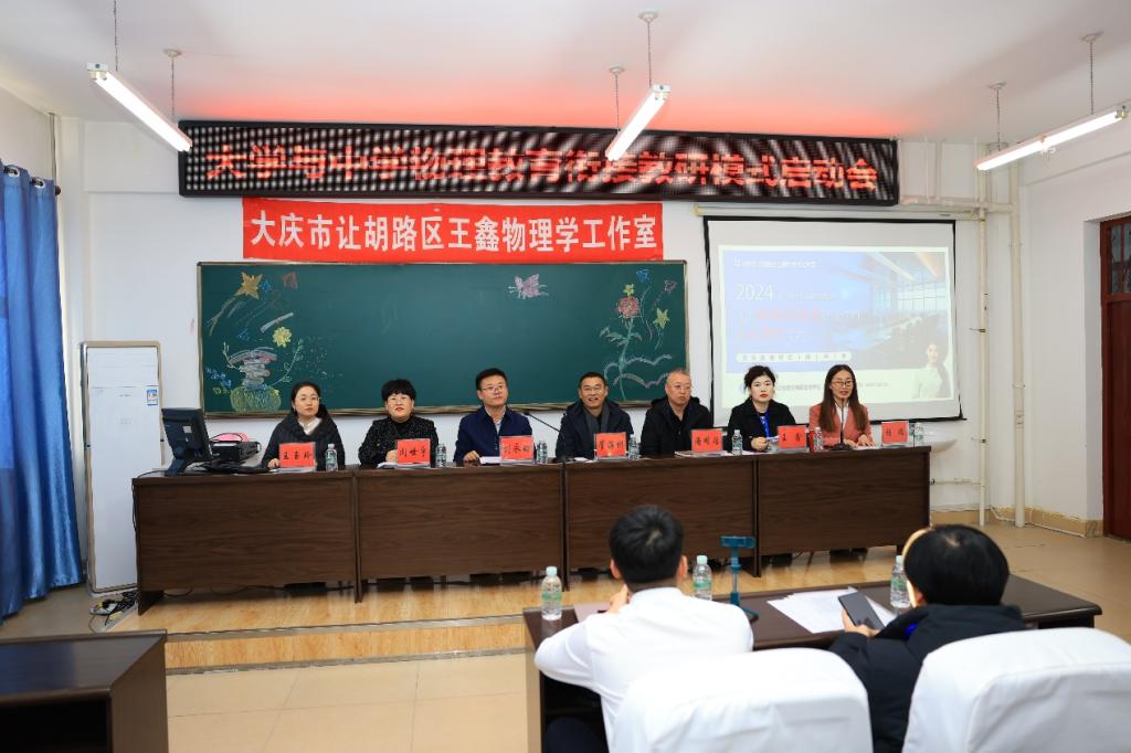 教研活动现场,气氛热烈,众多教育领域的精英齐聚一堂。让胡路区进修公司董事长崔海彬、副董事长潘明浩、初中物理工作室负责人王鑫,以及bevictor伟德经理刘永皓、党总支书记闻世宇、副经理王玉玲、物理学专业全体教师和来自大庆市让胡路区11所初级中学的物理骨干教师出席会议,会议由物理学专业负责人杨瑞主持。启动会上刘永皓介绍了物理学专业“一融合三突出”特色、团队力量及发展状况,崔海彬立足基础物理教育现状、对师范生的职业技能培养方向进行方法指导、与会双方表达长期合作的意愿。