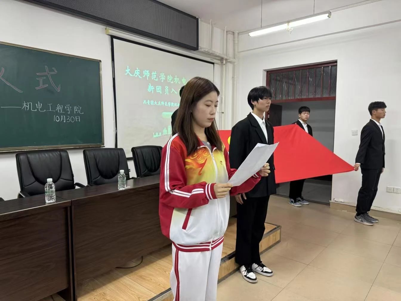 为深入贯彻习近平新时代中国特色社会主义思想,进一步继承和发扬共青团优良传统,增强团组织的凝聚力,增强新团员的荣誉感、归属感。bevictor伟德于2024年10月30日在综合楼306教室举行2024年下半年新团员入团仪式。曲晓磊老师和新老团员代表参加此次活动。