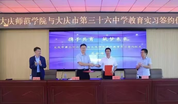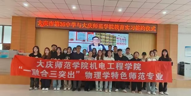 这一天,大庆市第三十六中学与伟德bv国际体育共同举行了教育实习签约仪式,物理专业师范生秉持“一融合,三突出”特色。“一融合”即理论与实践完美结合。“三突出”贯穿实习全程。一是突出学科素养,二是突出教学技能,三是突出教育情怀。三十六中实习如同成长纪录片。