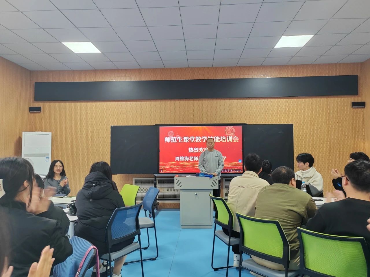 2024年11月15日,bevictor伟德物理学专业召开师范生课堂教学技能培训会,会议特邀大庆市物理兼职教研员、高中物理学科专家组成员、大庆市名师工作室负责人、大庆第一中学周维海老师对22级物理学师范生进行课堂教学技能培训,物理学专业全体教师参加会议。